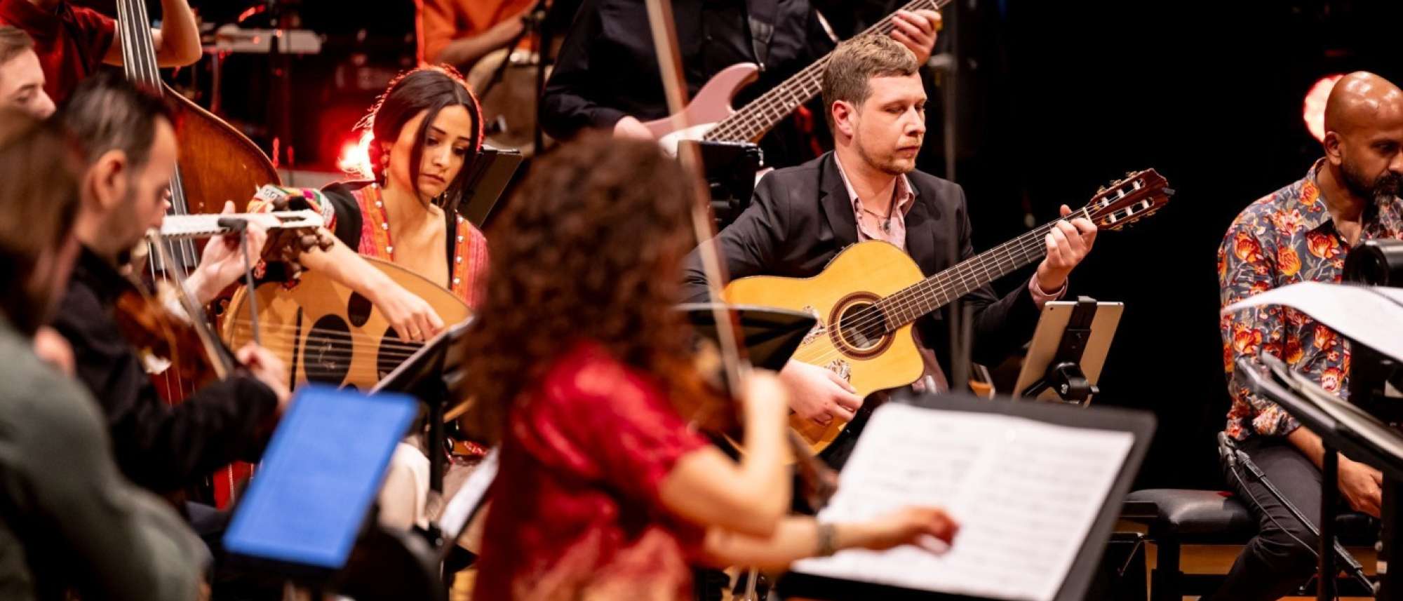 In der europäischen Musikszene ist das Bridges Kammerorchester – The composing orchestra – ein absolut einzigartiger Klangkörper: Denn das Orchester vereint 25 Musiker*innen aus 15 Ländern und verbindet westeuropäische, arabische sowie persische Instrumente und Musikstile und greift auch auf traditionelle osteuropäische, zentralasiatische und lateinamerikanische Klänge zurück. Die Musiker*innen des Orchesters komponieren und arrangieren einen Großteil des Repertoires selbst – sie sind Expert*innen für ihre Orchesterbesetzung, die es auf der ganzen Welt nur einmal gibt.